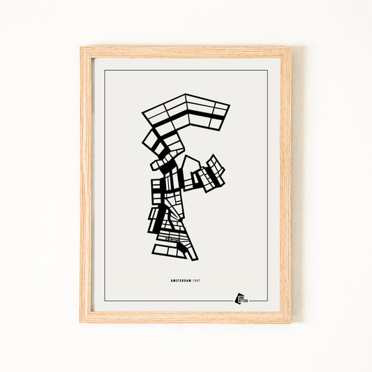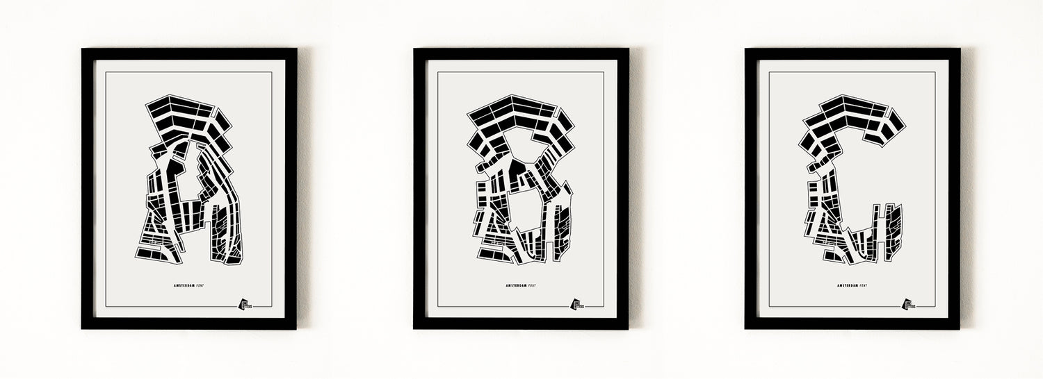 Landletters ontwerpt letters gebaseerd op plattegronden van steden. Vanuit een ander perspectief wordt er gekeken naar de indeling en geschiedenis van een stad en zo ontstaat een geheel opzichzelfstaand lettertype dat de identiteit van de stad doet uitblinken. Origineel, kunstzinnig en uniek. Breng een stukje Amsterdam in huis met onze kunstzinnige stadsletters en geef je interieur, of dat van iemand anders een unieke en betekenisvolle uitstraling. Het Amsterdam font is nu verkrijgbaar in verschillende prints en formaten.